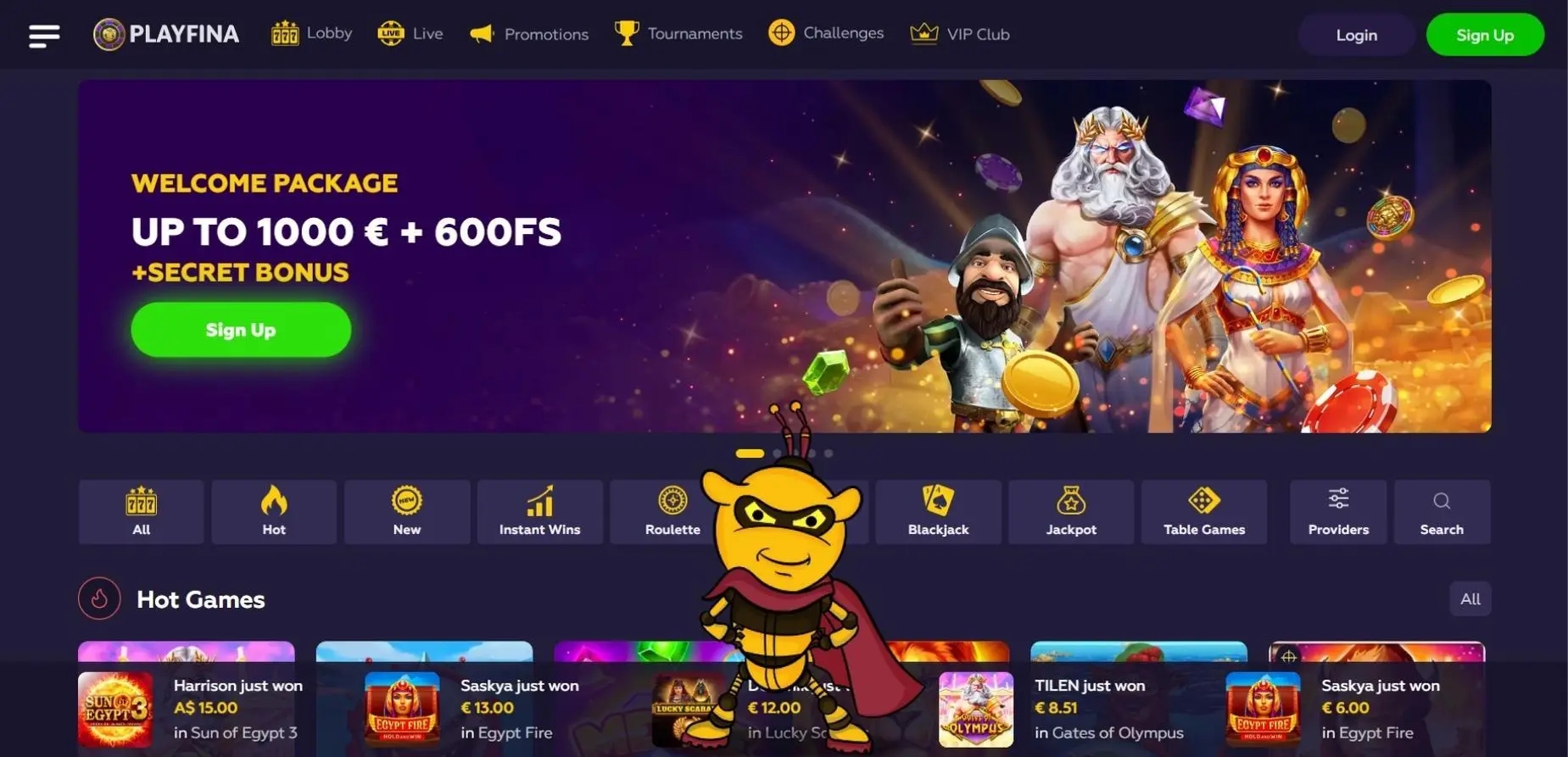 The Playfina sign up bonus may be usable on a specific selection of games or game types, depending on the terms of the bonus offer. It is recommended to check the bonus terms and conditions to see which games are eligible for bonus wagering and which games are excluded.